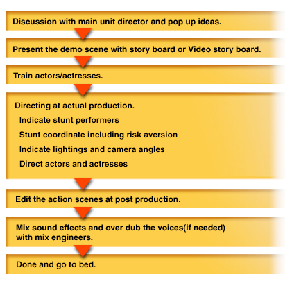 | Stunts/Stunt doubles | For dangerous and difficult moves, we supply stunt performers in place of the actors/actresses. |